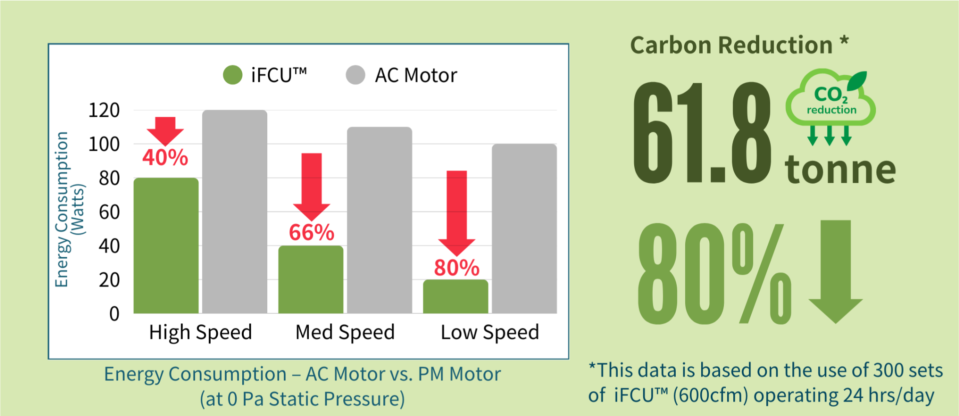 With variable speed drive, the motor further enhances efficiency system compared to traditional fixed speed AC motor designs.